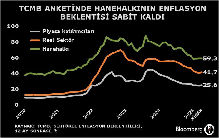 Nisan ayında 12 ay sonrası yıllık enflasyon beklentileri bir evvelki aya nazaran, piyasa iştirakçileri için 1 puan artarak yüzde 25,6 düzeyine, gerçek bölüm için 0,6 puan artarak yüzde 41,7 düzeyine yükselirken, hanehalkı değişmeyerek yüzde 59,3 düzeyine yükseldi.