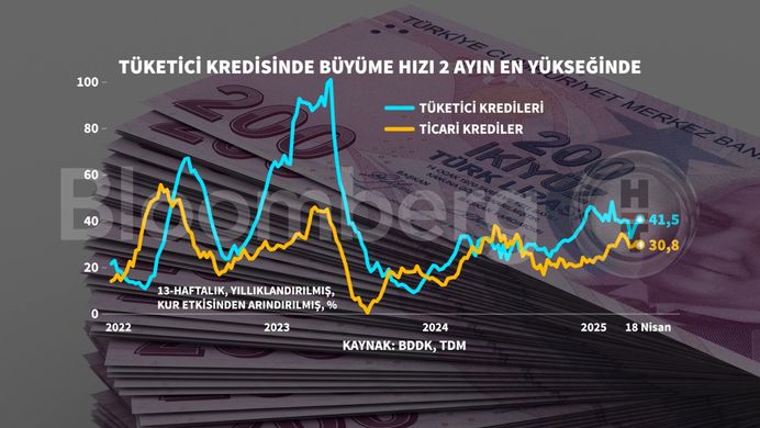 Tüketici kredilerindeki büyüme yüzde 41,5 ile son iki ayın doruğunu oluşturdu.