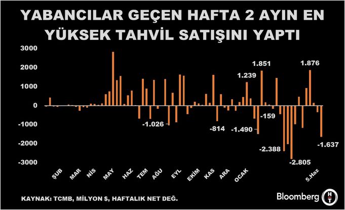 Türkiye Cumhuriyet Merkez Bankası(TCMB) tarafından açıklanan datalara nazaran, birebir hafta DİBS (Kesin Alım) net satımları 1 milyar 637,1 milyon dolar oldu.