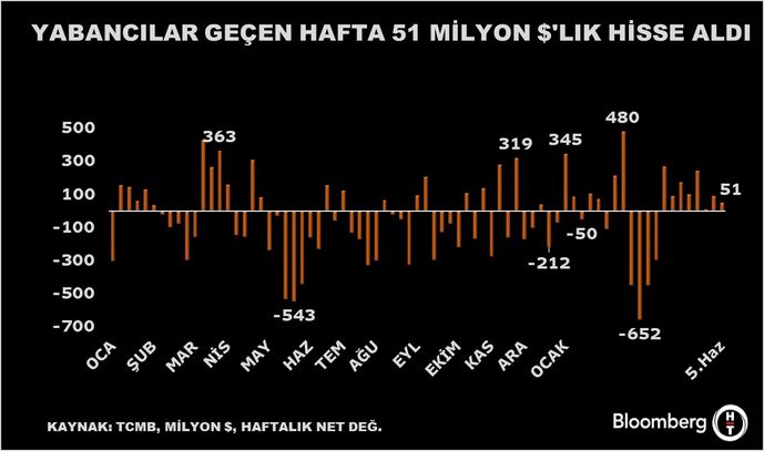 Yurt dışında yerleşik bireyler piyasa fiyatı ve kur hareketlerinden arındırılmış datalarla 6 Haziran haftasında 51,3 milyon dolar net pay alımı yaptı.